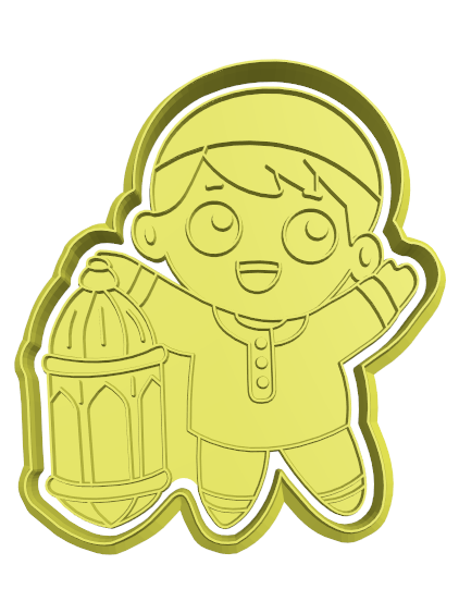 Little Boy holding lantern cookie cutter and stamp